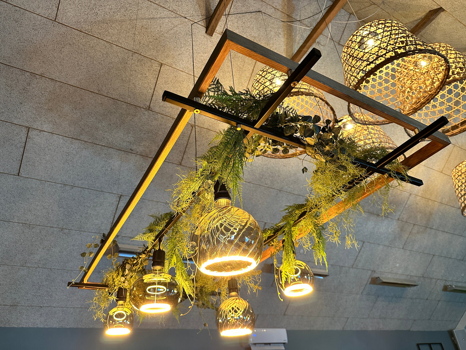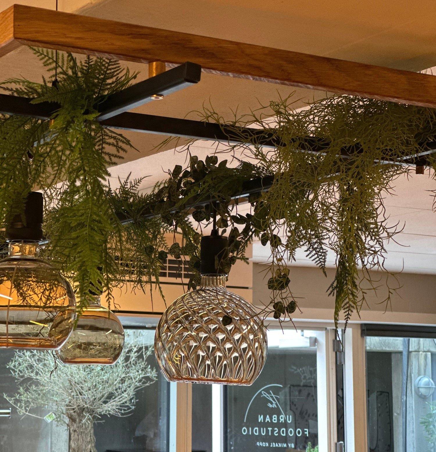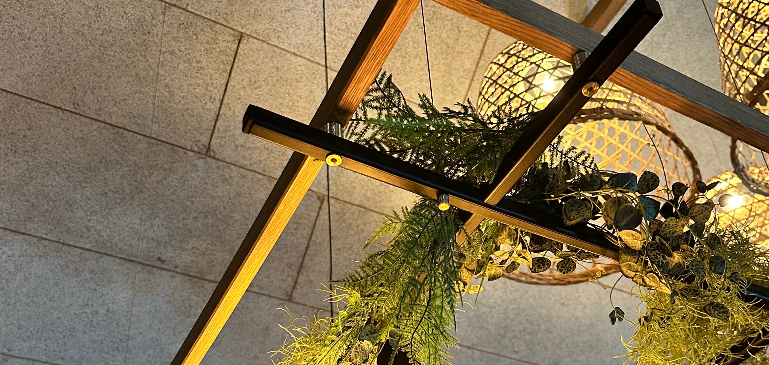 Erstellen Sie eine einzigartige Atmosphäre mit unserer stilvollen Deckenlösung. Unsere Deckenpflanzen und Lampen in schwarzer Stahl und geölte Eiche bringen die Natur in Ihr Arbeitsumfeld oder Ihr Zuhause. Die Kombination aus zeitlosen Materialien und einfacher Installation erleichtert die Erstellung einer exklusiven und kreativen Oase, die sich perfekt für Produktivität und Entspannung eignet.