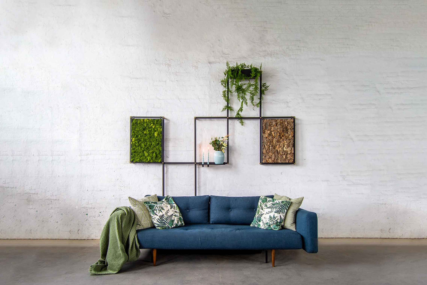 Grid collection creates a living wall artwork. The black powder coated frames combined with our moss walls provide a perfect balance between the raw and the organic. A flexible solution that can be used both as an artistic touch and a practical plant wall.