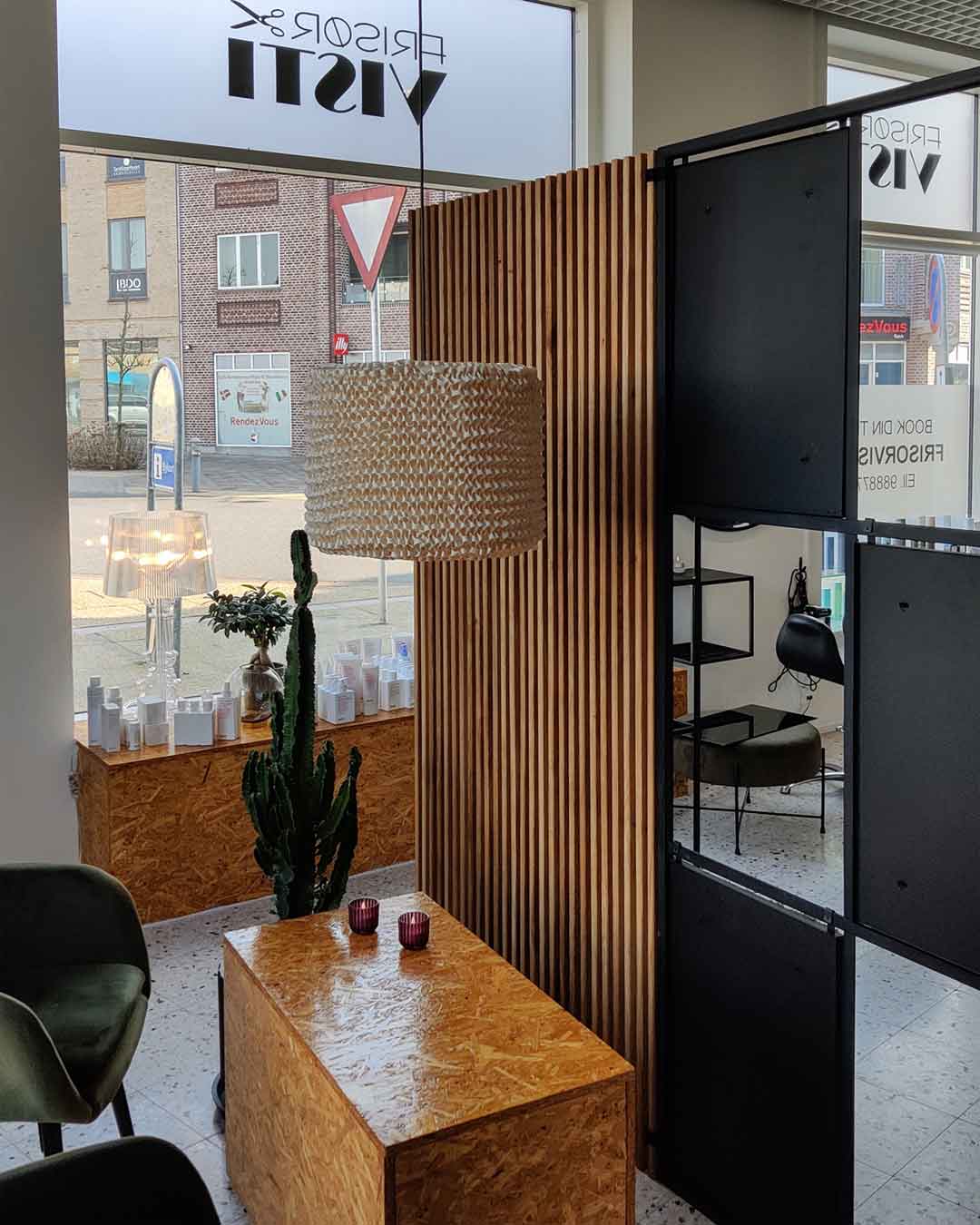 Line The lample wall creates a perfect balance between openness and shielding. The vertical oak slams in either light nature or smoked oak combined with the black powder coated steel frame give an elegant space sharing that lets the light flow freely.
