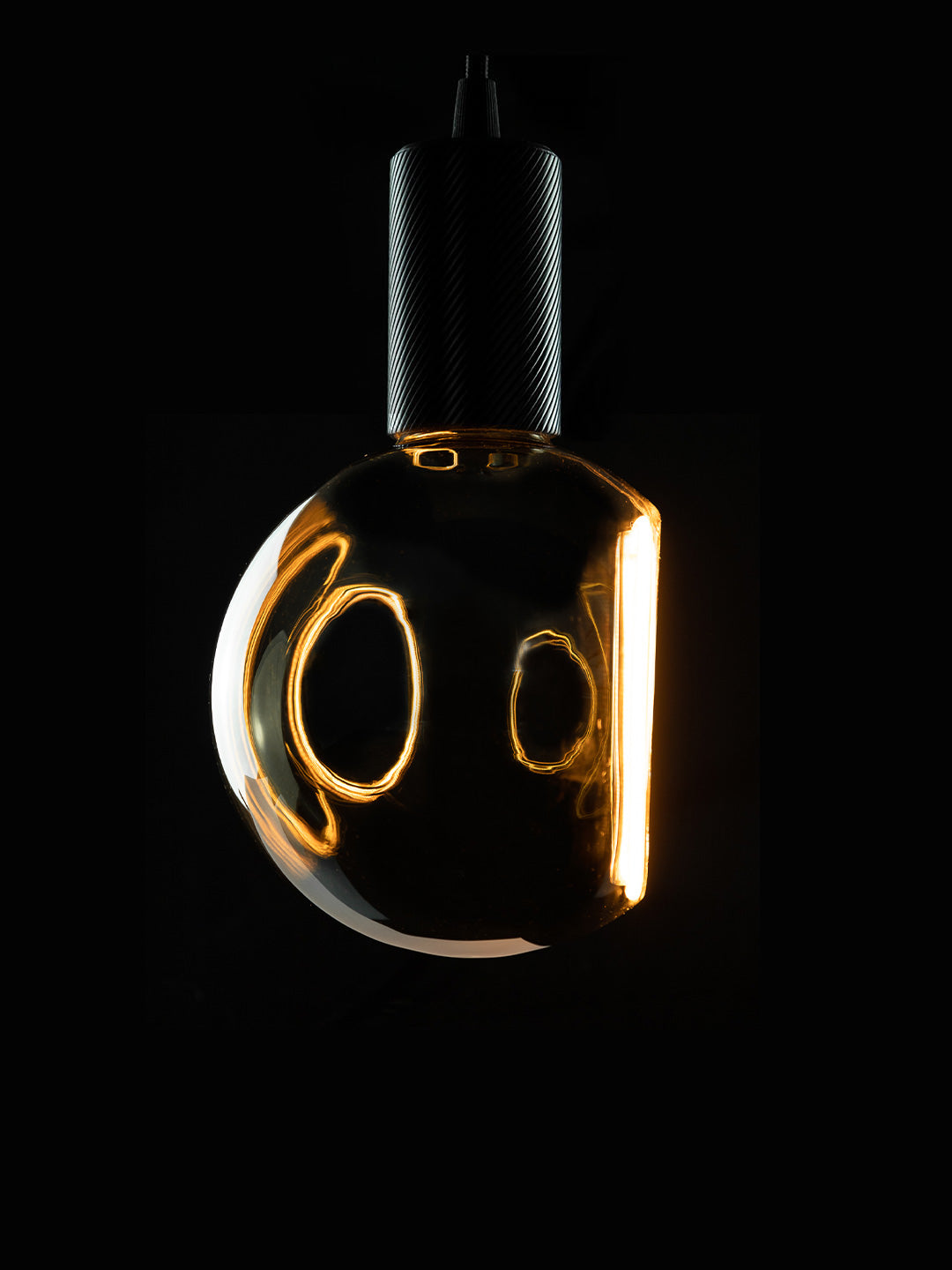 Denne model er en del af Segulas prisvindende Floating-serie, hvor hver lampe er mundblæst og individuelt fremstillet. Den patenterede Soft-Filament-teknologi giver den karakteristiske svævende lyseffekt, samtidig med at pæren er dæmpbar og energibesparende. Med kun 6 W forbrug (svarende til 26 W glødepære) og en levetid på op til 20.000 timer forenes design, effektivitet og holdbarhed.