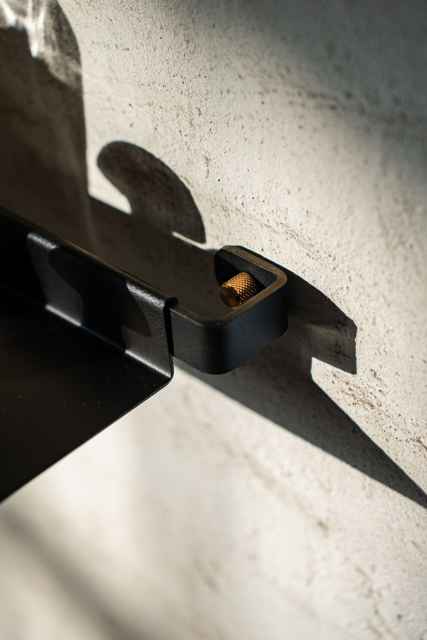 T-serien fra vores GRID kollektion er essensen af Raw Solutions designfilosofi. Den væghængte stang i sort pulverlakeret stål med messingdetaljer skaber et råt og moderne udtryk. De eksklusive fingerskruer i messing sikrer ikke kun en let installation, men tilfører også et sofistikeret touch til det industrielle design.